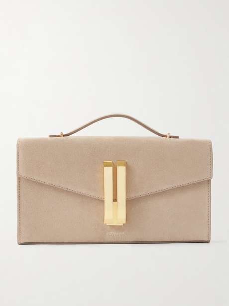 The timeless appeal of vintage handbags inspires DeMellier's 'The Vancouver' clutch. Handcrafted from smooth suede, it has a sleek envelope shape with a gold-tone double-bar lock and enough space for your phone, cardholder and keys. Use the chain strap to go hands-free.