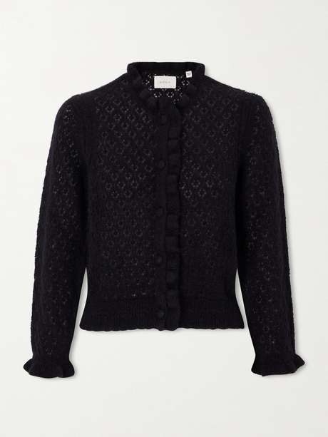 DÔEN Claudie ruffled pointelle-knit alpaca and wool-blend cardigan