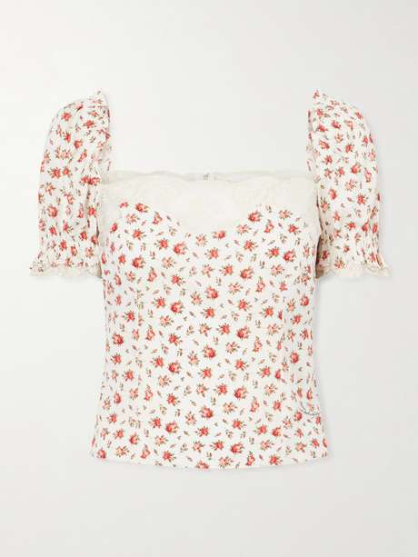 DOLCE&GABBANA Floral-print lace-trimmed silk-blend blouse