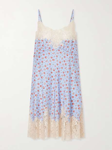 DOLCE&GABBANA Floral-print lace-trimmed silk-blend mini dress