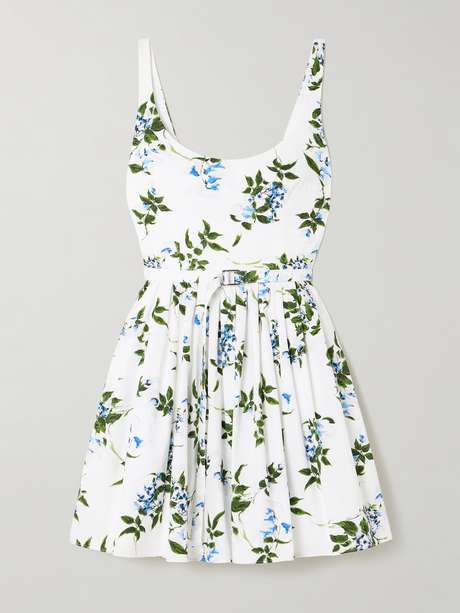 Emilia Wickstead's romantic dresses boast endless charm. This 'Eglantine' mini is made from cotton-poplin that's patterned with vivid blooms and is softly pleated through the hem for volume. Wear yours with sandals and an elegant box clutch.