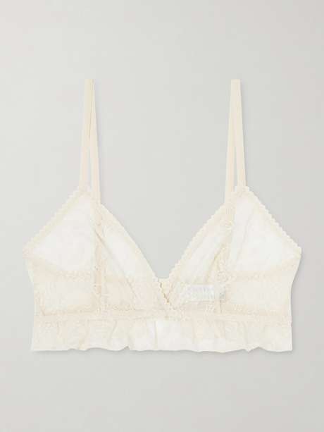 Eres' 'Clochette' bra is embroidered with ditsy florals for added romance. Made from sheer mesh, it has triangle cups framed by ric-rac trims and a sweetly ruffled underband. Wear yours as a set with the matching briefs in our edit.
