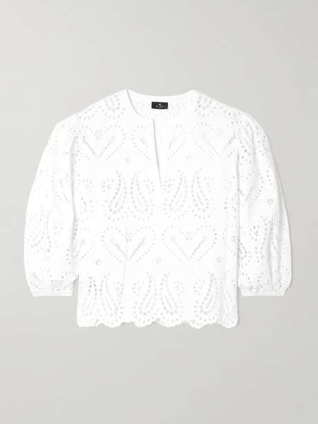 Etro's blouse adds classic charm, however you choose to style it. It’s cut from broderie anglaise cotton-blend poplin in a boxy fit that's elevated with puffed sleeves. Style yours with the label's matching white skirt.