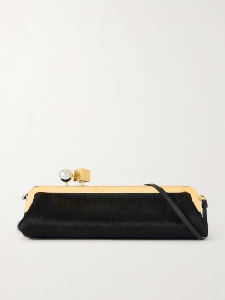 The elongated shape of Jacquemus' 'Salon' clutch is so elegant. It's made from lustrous, tactile calf hair with a gold-tone frame and slim leather strap. The clasp is composed of a square and circle, which is a signature that fans will love.