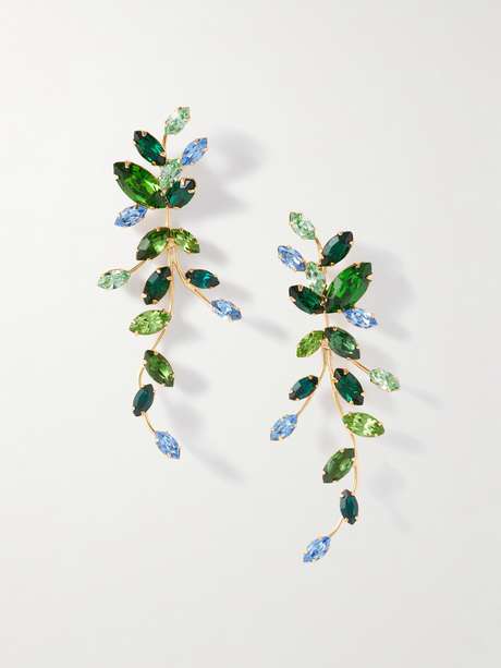 EXCLUSIVE AT NET-A-PORTER. Jennifer Behr's 'Vivica' earrings are designed to look like vines trailing from your lobe. They're cast from gold-tone metal and are set with blue and tonal-green crystals in leaf-like marquise cuts.