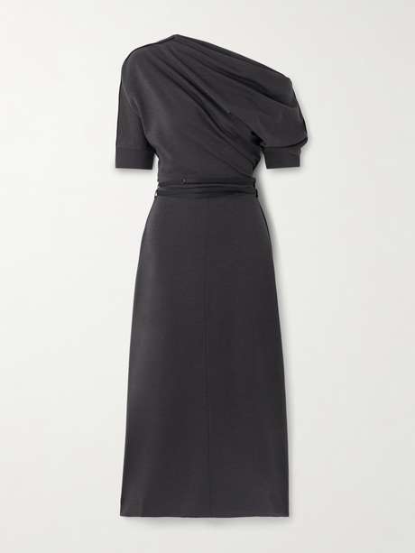 LEMAIRE's collections are inspired by classic Parisian style. Made from jersey, this belted midi dress has a gathered, off-the-shoulder neckline and a twisted hem. Wear yours with knee boots.