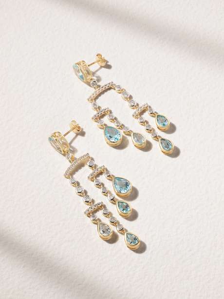 As their name suggests, the beauty of Mateo’s ‘Mobile’ earrings is in the artful, subtle way they move through space. Handcrafted from 14-karat gold and set with glimmering diamonds and topaz, each tier is hinged to create a graceful, light-catching sway.
