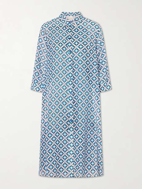 Max Mara interprets classic shirting through a sheer finish. Made from a blend of cotton and silk, this dress has 3/4-length sleeves and falls to a knee length. Style it with a slip underneath.