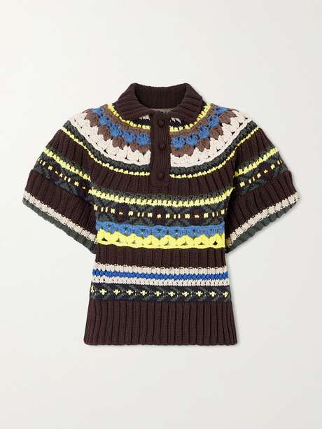 Sacai's polo shirt is inspired by Fair Isle but with the Japanese brand's typical eclecticism. It's knitted in a combination of textured stitches and bold colors and has thick ribbed edges.