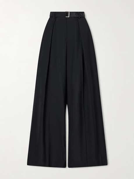 Voluminous tailoring runs throughout Sacai's collections. Made from crepe, these pants are pleated to enhance the balloon-leg shape and threaded with a grosgrain D-ring belt for a utilitarian edge. Balance the proportions with a boxy tee.