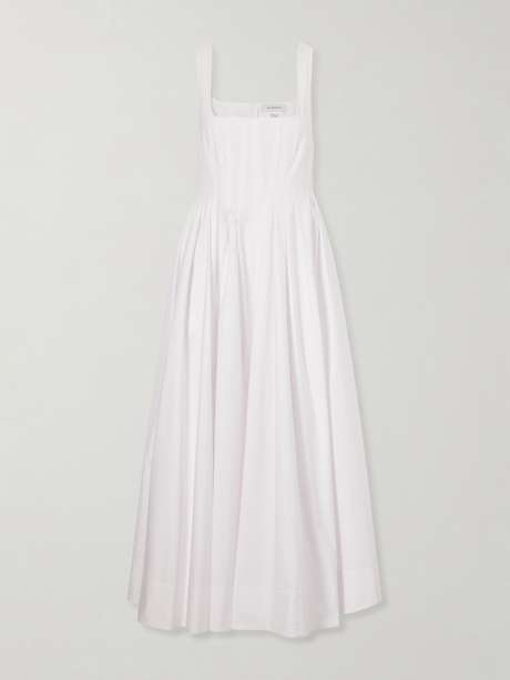 SportMax blends structured tailoring with airy silhouettes in this maxi dress. Cut from lightweight cotton-poplin, it has a fitted corset bodice with a scoop neckline that flows into a pleated skirt, creating a balanced, elegant shape perfect for warm-weather occasions.