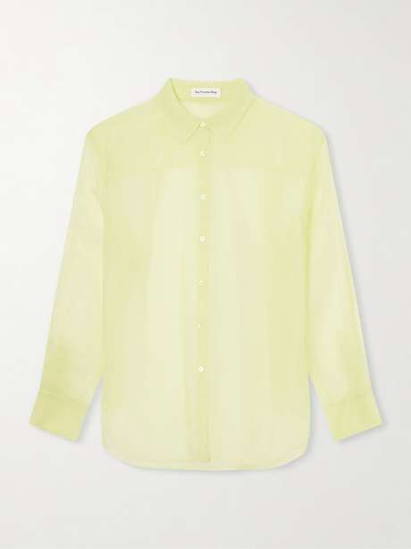 THE FRANKIE SHOP updates its classic 'Peri' shirt design in a lemon sheer version. Crafted from silk-blend, it's designed for a relaxed fit, making it suitable for layering. Style it with the matching skirt.