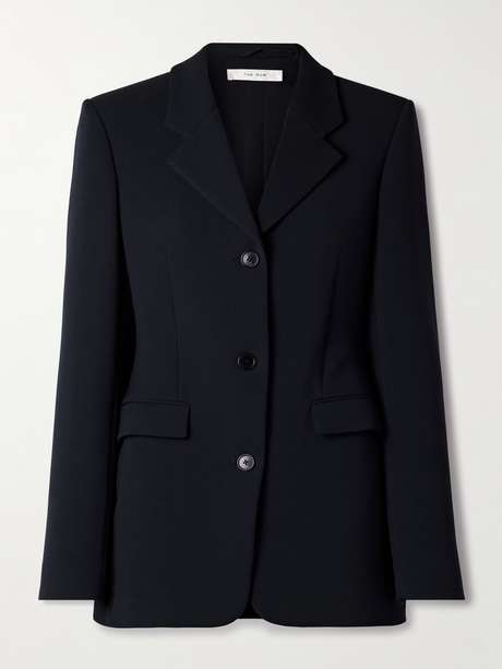 Chic and timeless, The Row's 'Fontana' blazer can be worn with just about anything - style yours with jeans or the brand's 'Mimi' tights, as seen on the Resort '26 runway. Tailored from wool in a deep midnight-blue, it has a slim bodice emphasized by darts at the waist.