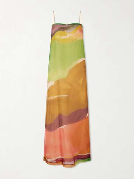 Ulla Johnson’s midi dress is crafted from sheer silk-organza printed with delicate motifs. The airy fabric creates a light, ethereal effect as it floats around the body.