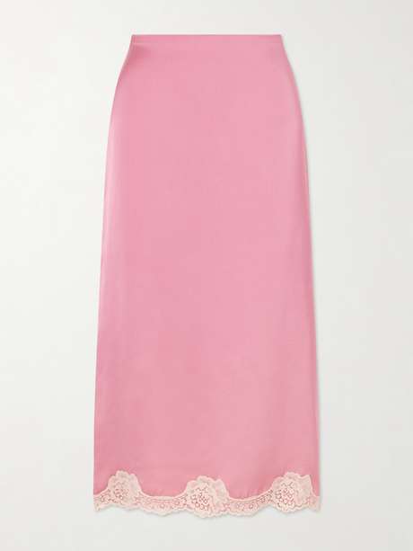 Valentino Garavani's midi skirt blends timeless elegance with delicate detail. Cut from lustrous cady, it's finished with a soft blush lace hem that adds subtle texture and romantic flair to the fitted silhouette. The fluid cut enhances movement, making it versatile for day or evening styling.