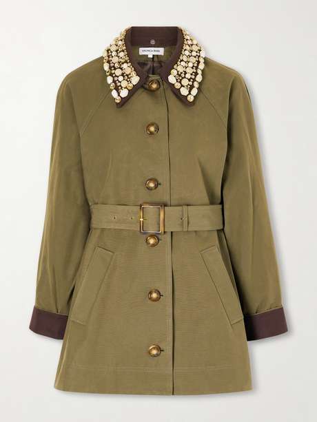 Veronica Beard's 'Langham Dickey' coat is a forever-buy that's also really fun. Made from waxed fabric, it has a detachable embellished collar and a belt to cinch the shape.