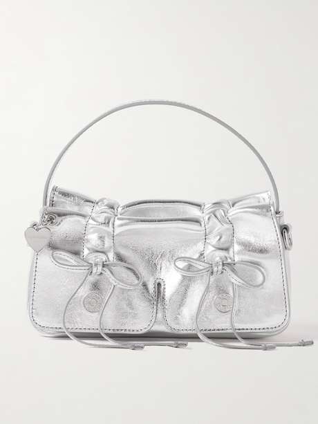 Acne Studios' bag is made from silver leather that really makes a statement. Designed in a slouchy shape, it has a split front flap and generous pockets on each side. It's decorated with logo-detailed rivets and heart-shaped charm and offers space for your phone, a few cards and lipstick.