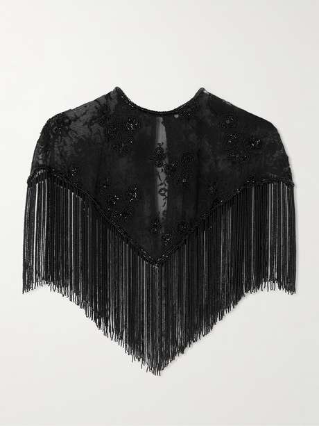 Alix of Bohemia's 'Flou Night Ride' cape is made from cotton-tulle and finished with delicate fringing. The tonal crystal embellishments are all applied by hand.