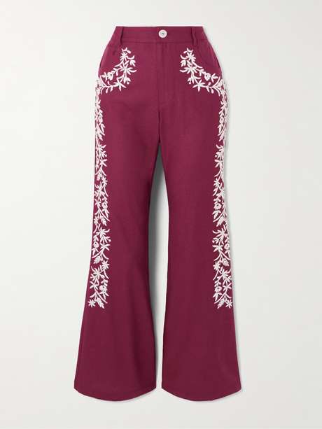 Reignite the joy of dressing up with Alix of Bohemia's 'Bunny Canyon' pants. They're cut to a retro-inspired flared profile from smooth silk and artfully hand-embroidered along the legs by skilled craftspeople. Zoom in to appreciate every detail of the needlework.