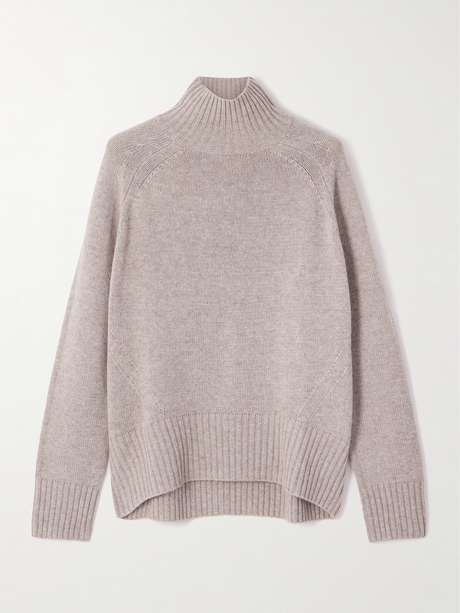 Allude's knitwear is the perfect combination of fiber quality and design. Rib-knitted from a wool and certified cashmere-blend, this sweater has a relaxed fit with a snug turtleneck and knuckle-grazing cuffs. The way the side seams curve to the front creates such a great shape.
