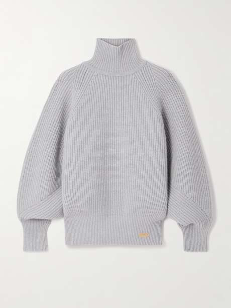 Balmain's sweater debuted on the Fall '25 runway, where it was worn with tonal leggings and knee boots. It's rib-knitted from wool for a chunky handle and has slouchy batwing sleeves and a chic turtleneck. Take cues from the show styling or pair yours with denim.