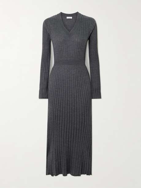 Brunello Cucinelli prioritizes natural fibers sourced from suppliers known for their quality and innovation. This midi dress is finely knitted from soft wool and has a classic V-neckline and nipped-in waist.