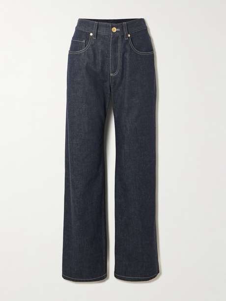 Brunello Cucinelli's collections are made in specialized workshops in Italy that prioritize time-honored techniques. These jeans are made from dark-wash denim that's outlined with contrasting topstitching and have relaxed straight legs.