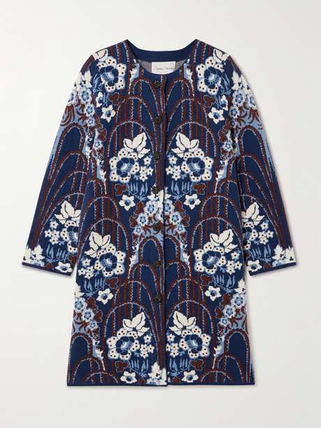 Cara Cara's 'Vicky' jacket is sure to make a statement, wherever you wear it. Made from wool-blend in a straight, collarless shape, it's jacquard-knitted with flowers and fastens with glistening crystal snaps. Pair yours with the matching 'Ayla' turtleneck dress for a '70s-inspired set..