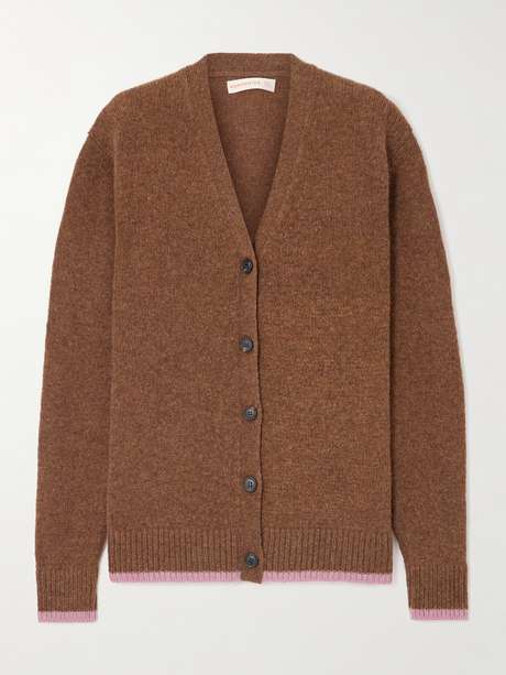 &Daughter's knitwear is more than just foundational basics; they're designed to carry stories and be "passed implicitly through generations". This cardigan is made from Shetland wool for a relaxed, longline fit and tipped with pink piping along the cuffs and hem.