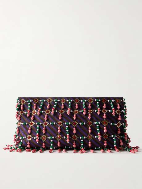 Dries Van Noten’s Creative Director Julian Klausner carries forward the label’s legacy of bold print, color, and texture. Reflecting that vision, this clutch is made from striped wool-blend that's embellished with an array of beads. It's sized to hold your phone, make-up essentials and wallet.
