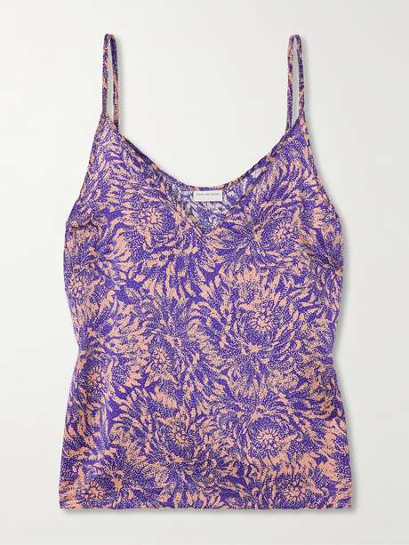 Dries Van Noten's tank showcases the brand's affinity for vibrant colors and playful prints. It's cut from fluid silk-satin and has a V-neck and pin-thin straps.