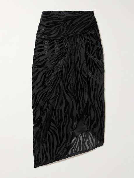 Take the ruched, asymmetric profile of Isabel Marant's 'Cristie' skirt as a styling cue – it's meant to be worn a little undone, true to the subversive mood of the Fall '25 runway. It's cut from airy silk-blend velvet mapped with devoré tiger stripes. Reach for point-toe boots to channel the show energy.