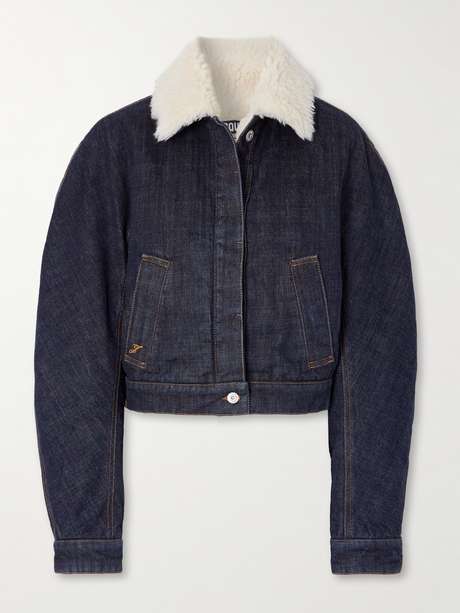 Reimagining classic aviation style, Jacquemus' 'The Ovalo' jacket is made from raw indigo denim with contrast stitching. Cut in a straight fit, it has a cozy plush collar and lining, sculptural rounded sleeves and welt pockets embroidered with a signature 'J' moniker. Adjust the waist tabs to define the shape.