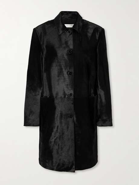 EXCLUSIVE AT NET-A-PORTER. Nour Hammour's elevated outerwear is designed to be cherished for years to come. Inspired by classic car styles, this coat is made from panels of soft cow hair that has a velvety sheen. The loose, longline fit layers nicely over tailoring or dresses.