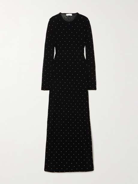 Rabanne's dress is knitted from ultra fine wool, creating a sheer, almost gossamer-like finish. Staying true to the label's original aesthetic, it's hand-embellished with gold-tone studs that glisten strikingly.