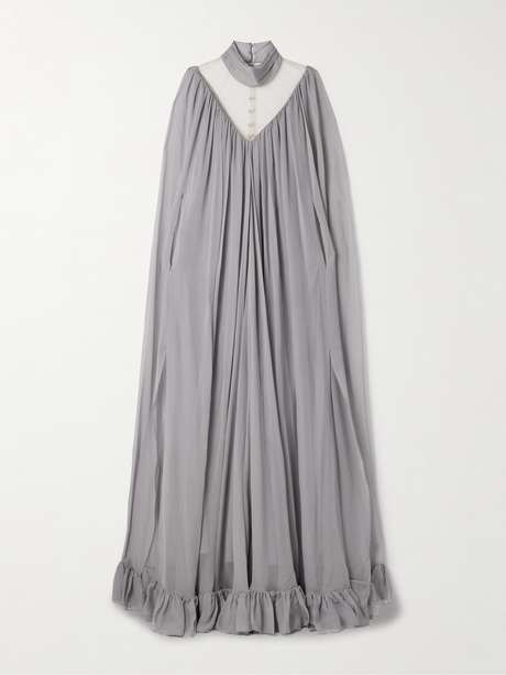EXCLUSIVE AT NET-A-PORTER. Rodarte's collections often capture the charm and glamour of styles from bygone eras. Inspired by opera capes, this gown is made from silk-chiffon, paneled with sheer tulle at the yoke and falls in soft folds to the floor-sweeping, ruffled hem. It's gloriously dramatic, so perfect for making an entrance.