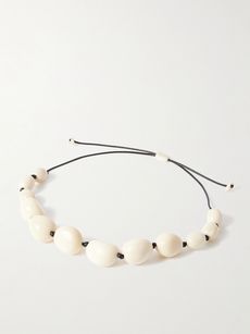 Whether strung with shells, pearls, semi-precious gems or beads, jewelry in eye-catching colors and shapes is a fun way to make a statement for a carefree vacation look. From our NET SUSTAIN edit and responsibly crafted by hand in Brooklyn, Jennifer Behr’s aptly named ‘Riviera’ earrings – tiered with emerald-cut yellow crystals, brilliant turquoise and natural scallop shells – will look gorgeous paired with a crisp, white shirt dress and dewy makeup.
