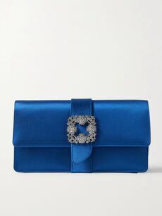 MANOLO BLAHNIKCapri crystal-embellished satin clutch