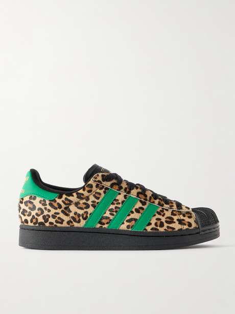 adidas Originals' 'Superstar II' sneakers are in demand this season, and this pair has a unique take. They're made from plush leopard-print calf hair with leather trims and have distinctive rubber toes.