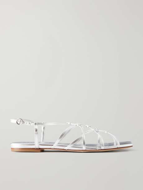 Aeyde's 'Anisa' sandals are crafted from smooth metallic leather with a cage-effect of slim woven straps. They feature square open toes and flat soles with a slight heel for all-day wear.