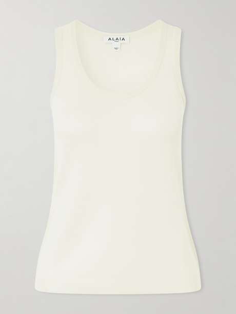 Add interest to minimal outfits with Alaïa's tank - the slightly sheer finish will provide unexpected texture alongside chunkier knits. It's been made in Italy from a soft wool-blend and has thick ribbed trims tracing the scooped neckline.
