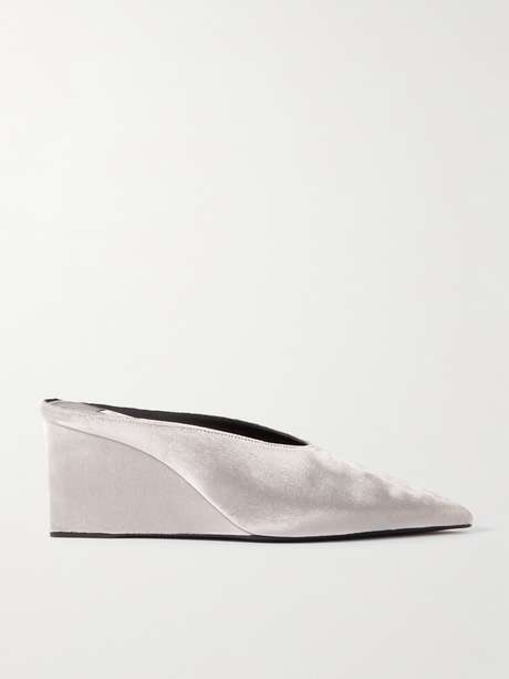 Alaïa's designs are informed by founder Azzedine's background in sculpture and passion for architecture. Crafted in Italy from velvet, these mules have pointed toes and wedge heels. Wear yours with one of the label's skirts or dresses.