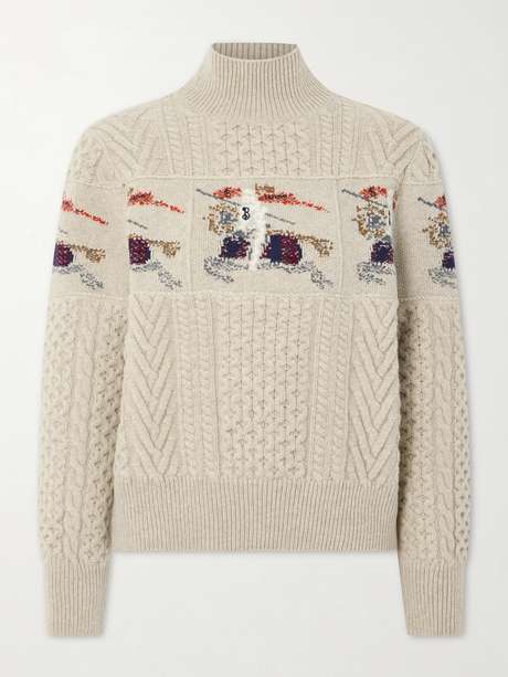 BURBERRY Cable-knit jacquard wool and cashmere-blend turtleneck sweater
