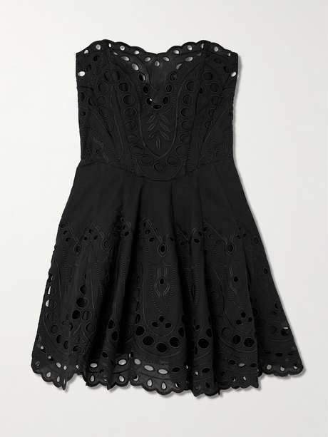 Charo Ruiz's collections have a '70s bohemian vibe, making them perfect for summer. This 'Bail' mini dress is made from a cotton-blend broderie anglaise and features scalloped hems and a strapless heart-shaped bodice. Wear yours with ballet flats or sandals.
