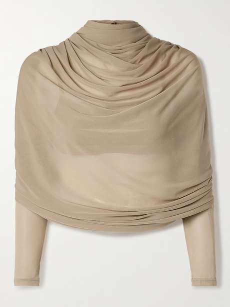 Christopher Esber is an expert at creating sculptural silhouettes - this 'Casteret' top is has a draped front overlay that looks particularly artful. It turns to reveal an open back and comes with a ribbed-knit bralette to temper the sheer tulle.