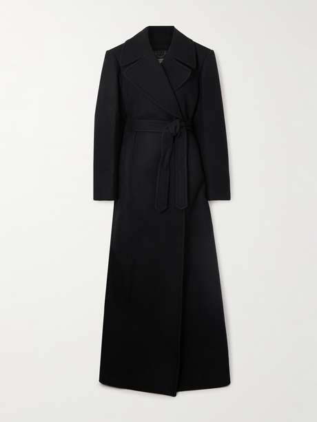 Dries Van Noten's coat opened the show for the label's Fall '25 collection. Made from wool-blend, it's threaded with swishy velvet laces and has an enveloping shape. Use the self-tie belt to define your waist.