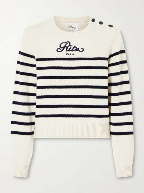 FRAME + Ritz Paris embroidered striped cashmere sweater
