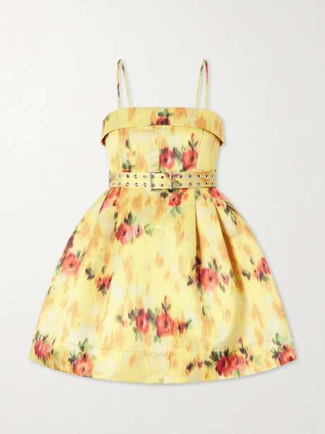 GANNI Floral-print tie-detailed duchesse-satin mini dress