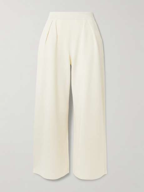 Max Mara's pants are a study in understated elegance. They're tailored from wool and fall to pleated, relaxed legs. Style them with a tucked-in knit or blouse and minimal heels.