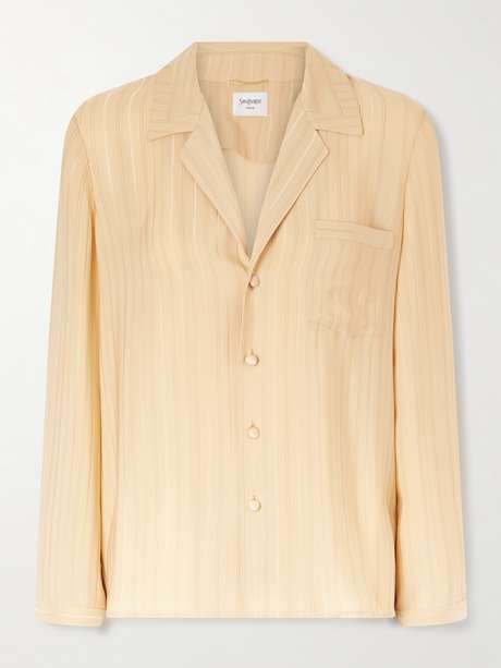 SAINT LAURENT's shirt embodies that signature Parisian insouciance. Made from silk-jacquard that hangs beautifully on the frame, it's cut with a pajama-inspired collar and patterned with slim stripes. Style yours with tailored shorts or the brand's denim.